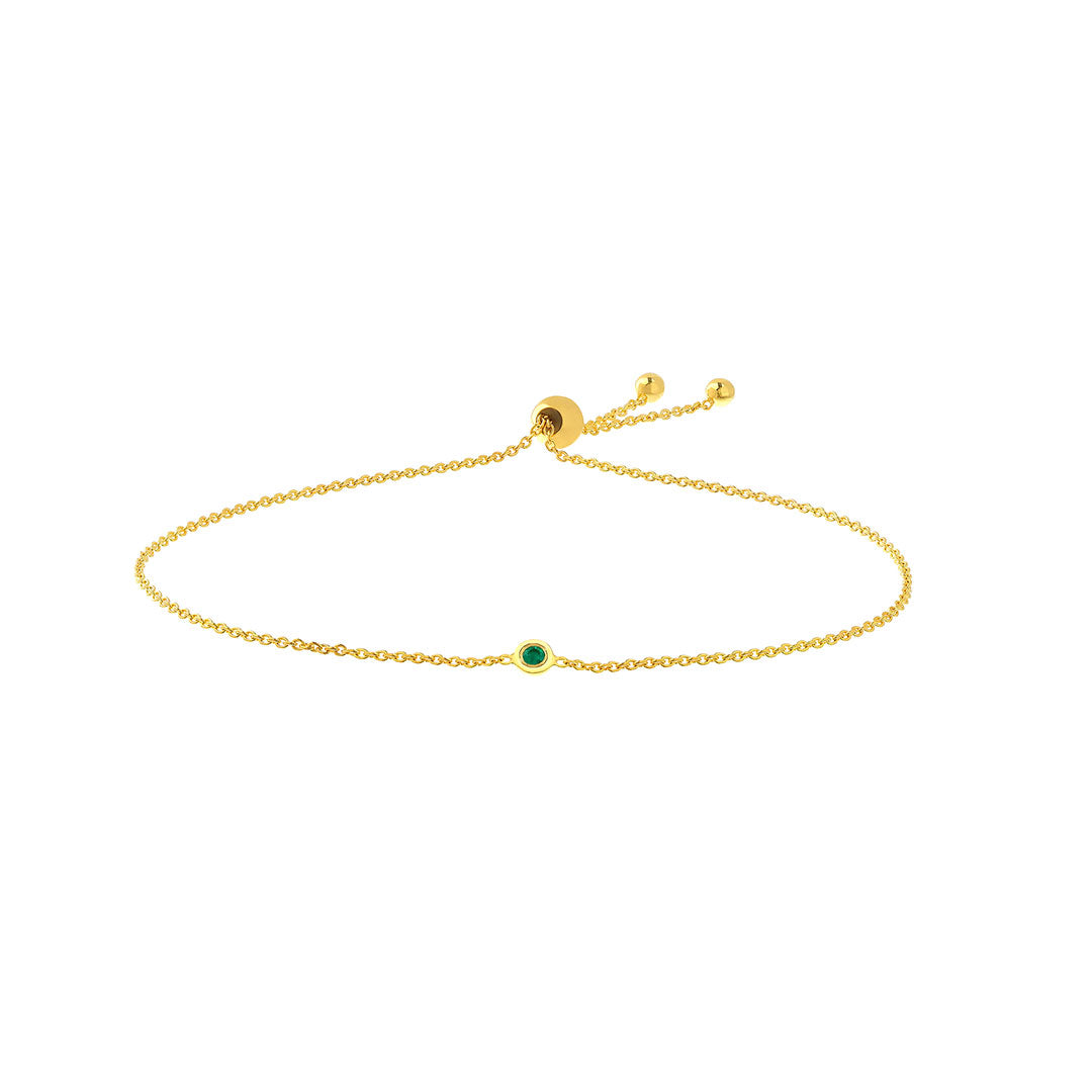 Emerald Bezel 14K Yellow Gold Bolo Bracelet