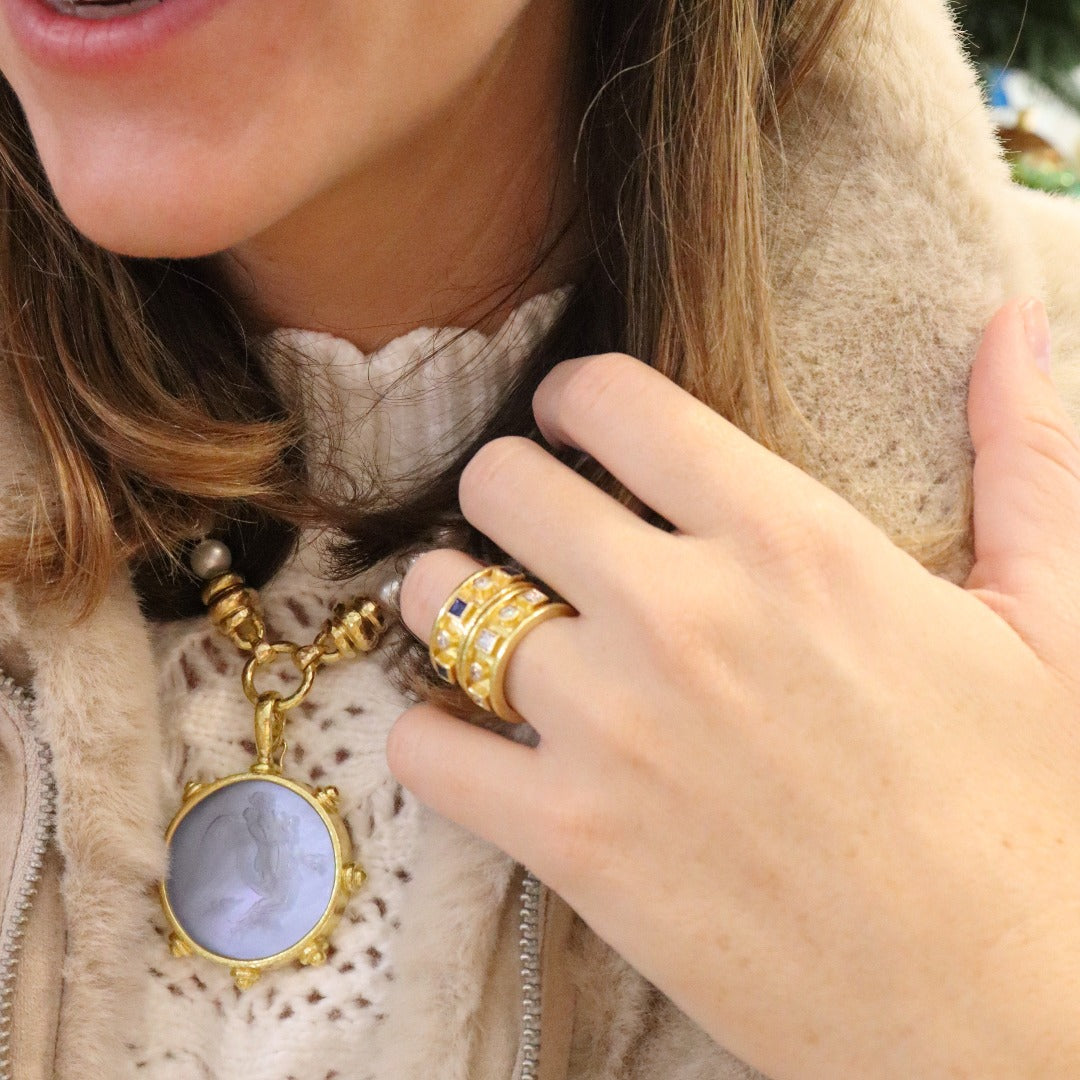 Famous for her neoclassical handmade 19-karat gold jewelry featuring Venetian glass intaglios, 19th-century micromosaics, 18th-century Chinese gambling counters, and luminescent stones. Her eye for design is synonymous with good taste and is a collector's dream! We love being the only store in South Carolina to represent Elizabeth Locke.