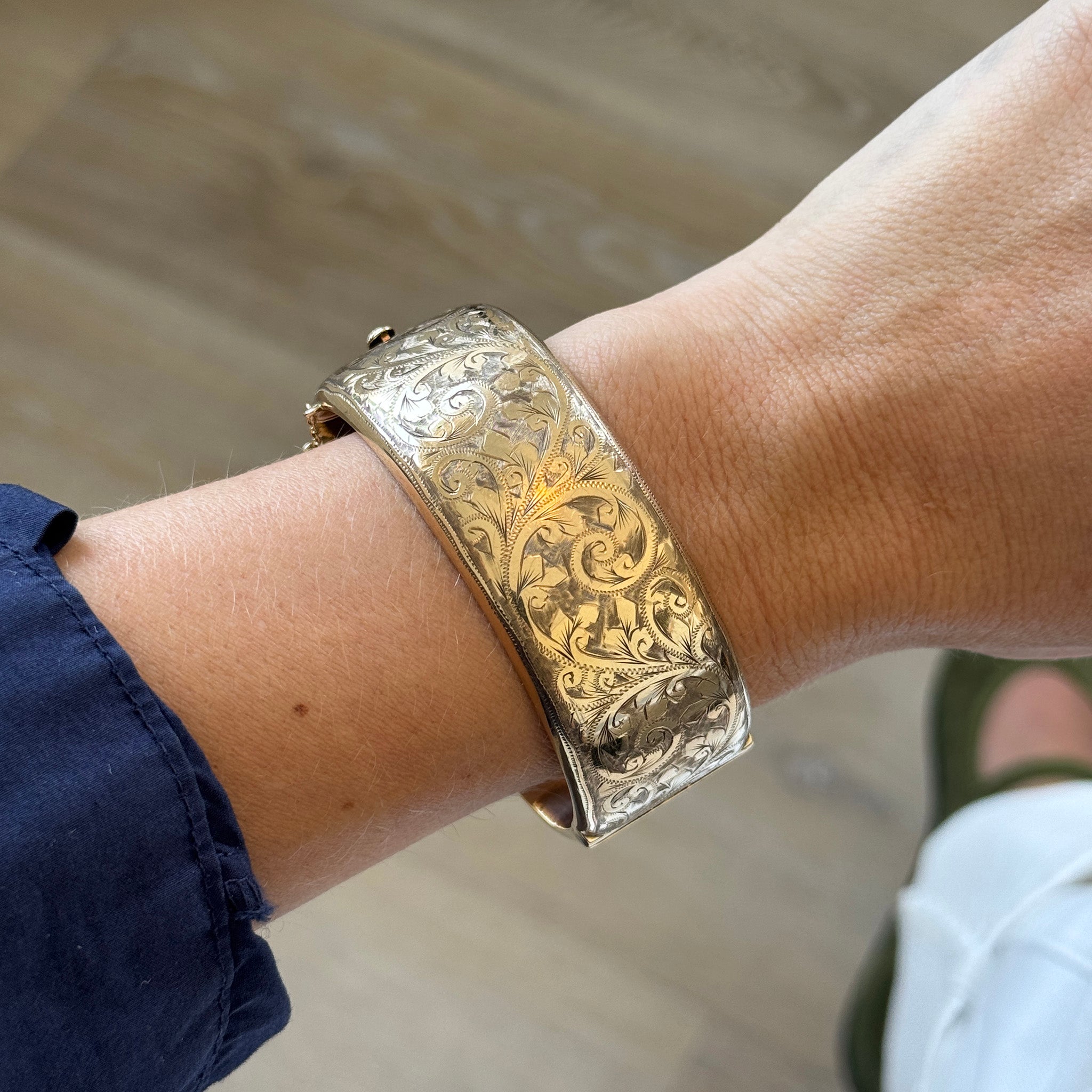 Victorian Seed Pearl Silver & 18K Gold French Bangle