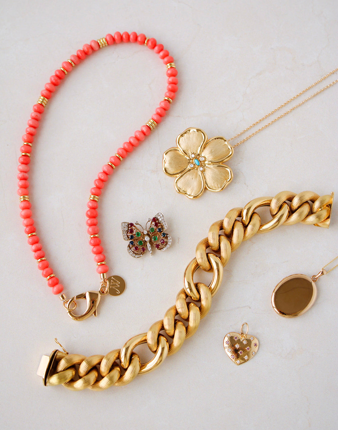 Jane Win Coral Gumdrop Beaded Necklace 16"