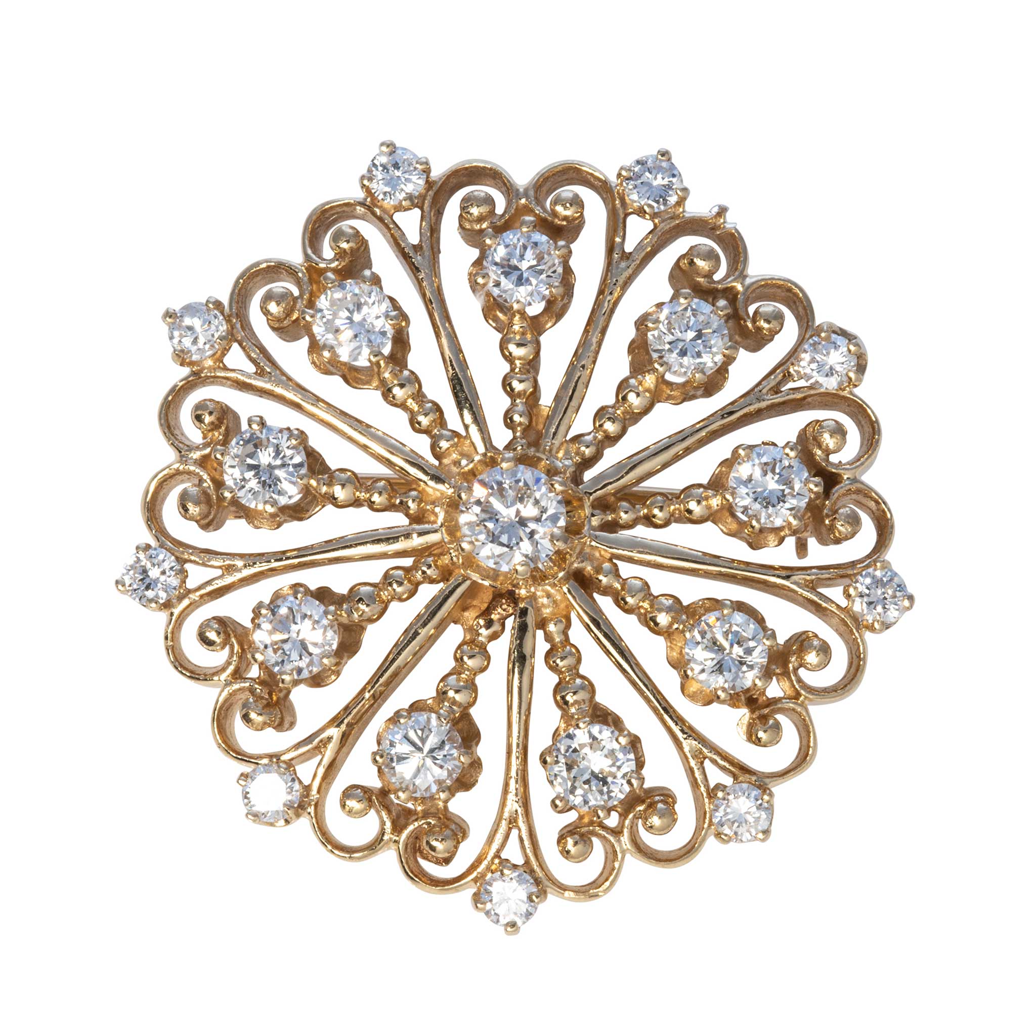 Victorian-Style Diamond 15K Gold Cross Pendant