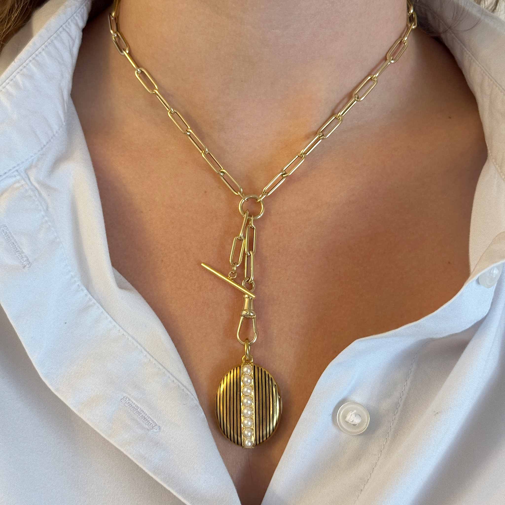 Victorian Pearl Starburst 15K Gold Oval Locket Pendant