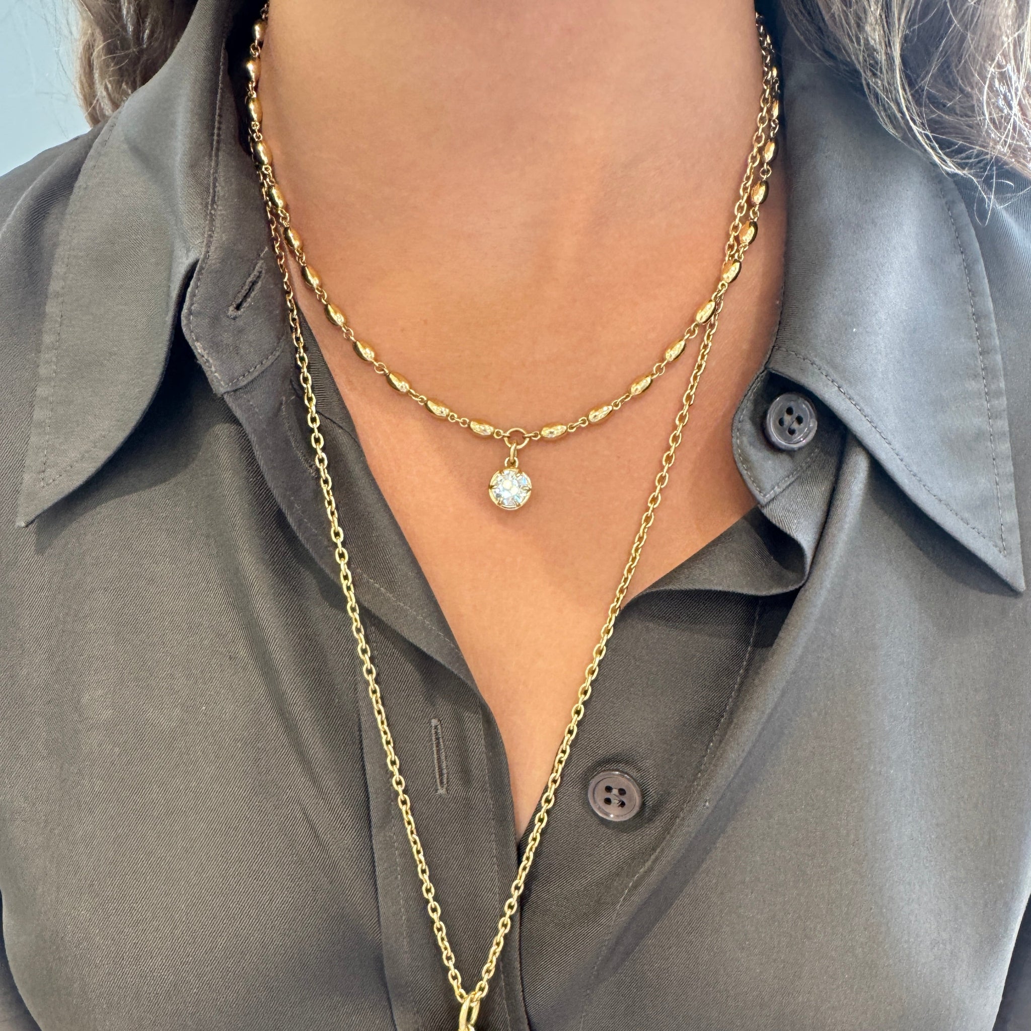 Single Stone 18K Yellow Gold Mini Rosary Chain Necklace 17"