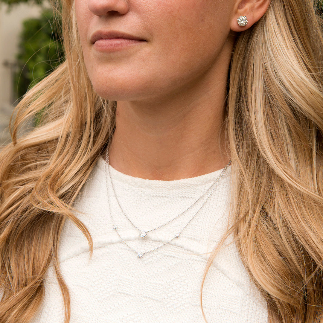 Diamond Bezel 3 Stone 14K White Gold Pendant Necklace