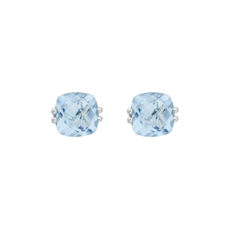 Cushion Aquamarine 14K White Gold 6mm Stud Earrings