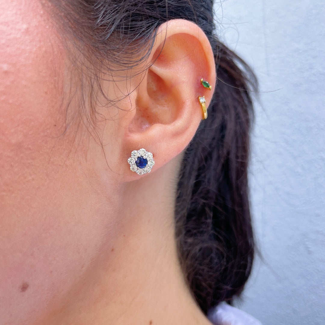 Sapphire & Diamond 14K Gold Huggie Earrings