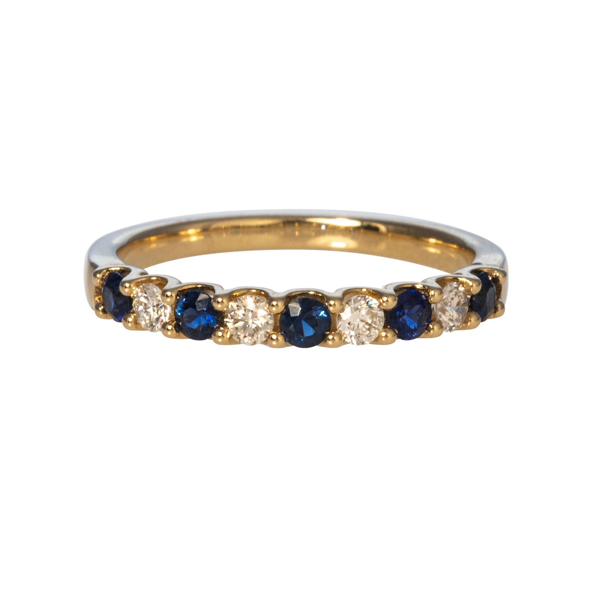 Sapphire & Diamond Channel Set 14K Gold Halfway Band