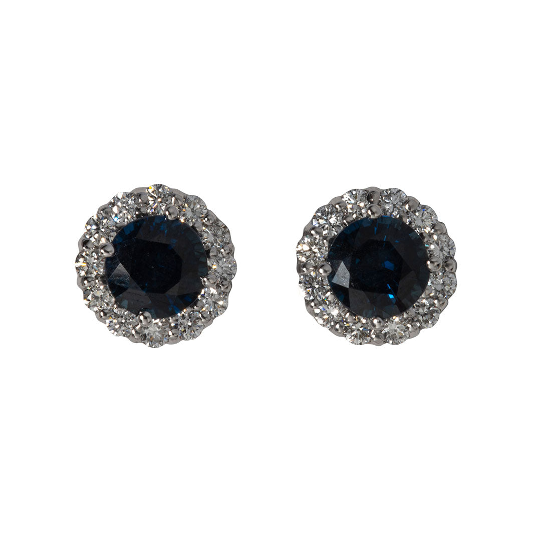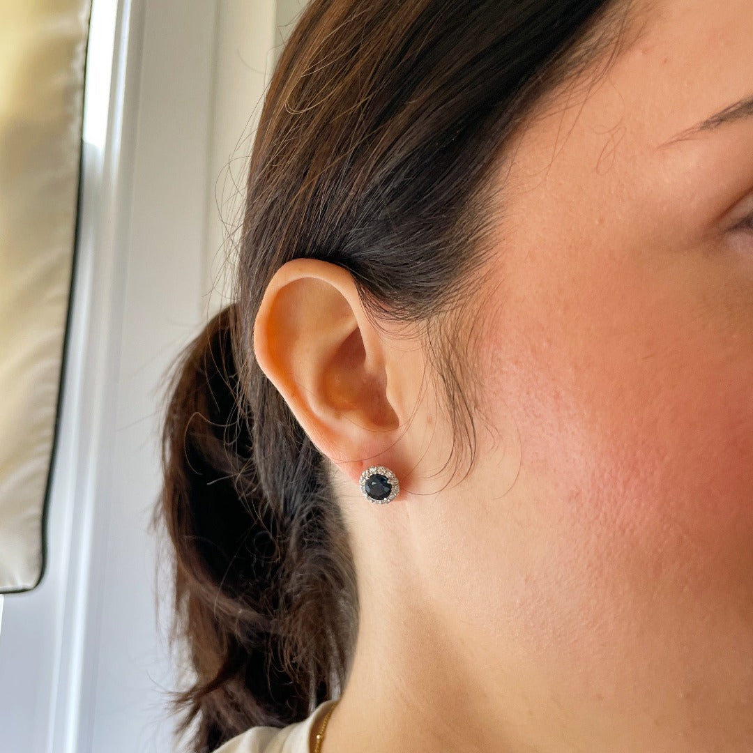 Blue Sapphire & Diamond Halo 14K White Gold Martini Stud Earrings