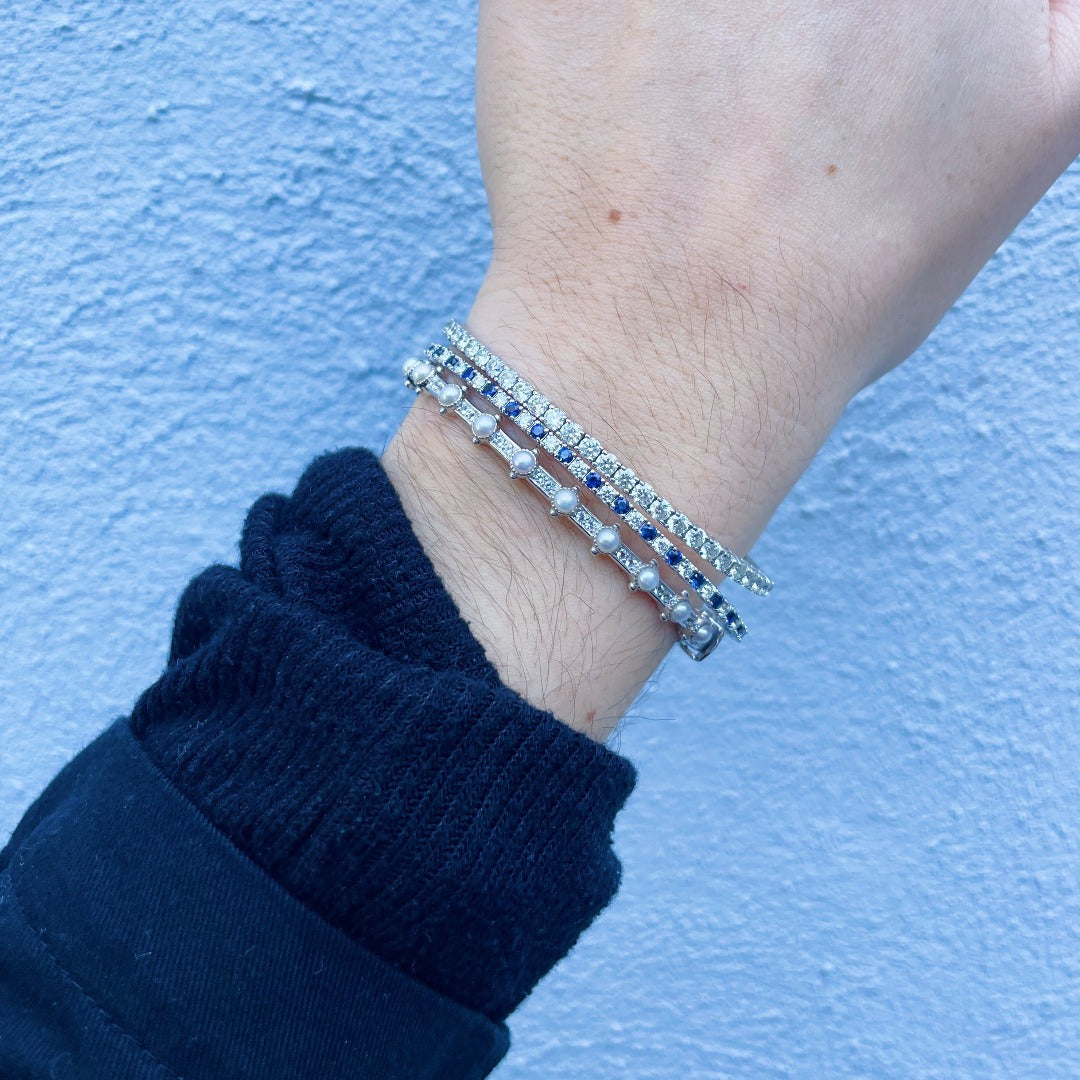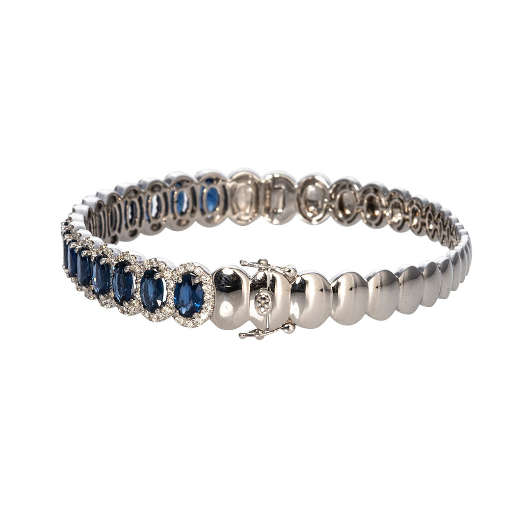 Sapphire & Diamond Graduated 14K White Gold Bangle