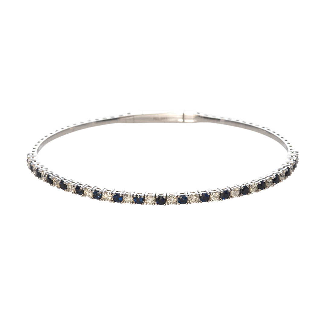 Sapphire & Diamond Channel Set 14K White Gold Bangle