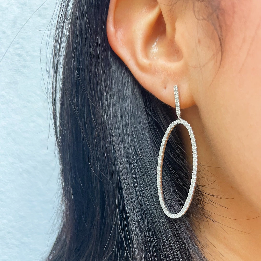 1.20ctw Diamond Pavé 14K White Gold Oval Drop Earrings