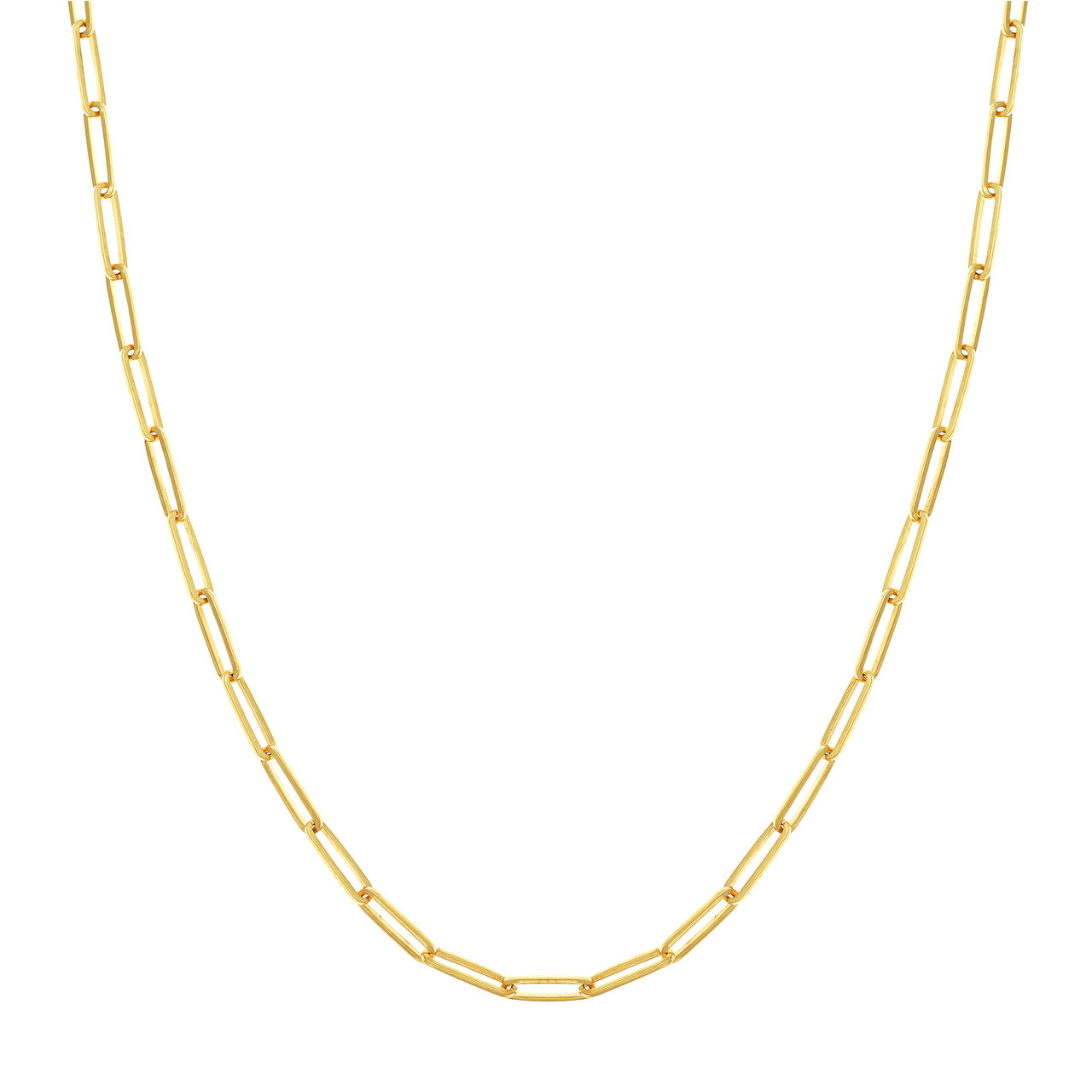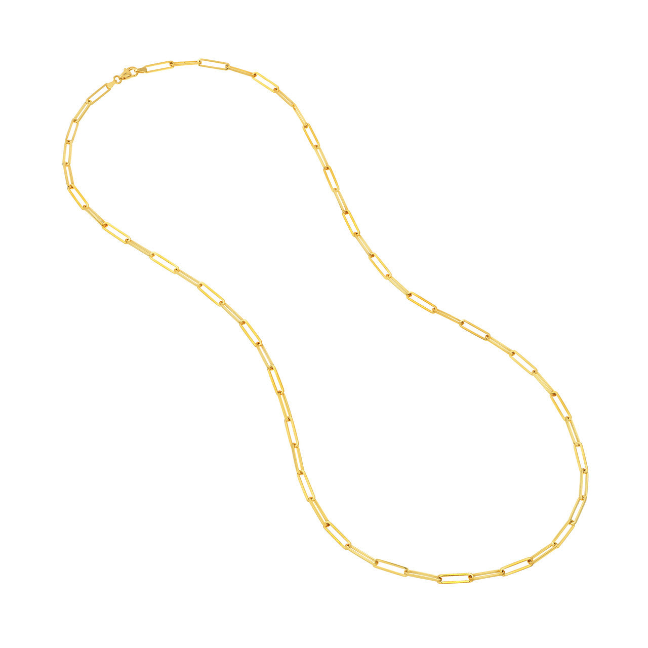 A polished 14K yellow gold paperclip elongated link chain necklace with a lobster clasp.