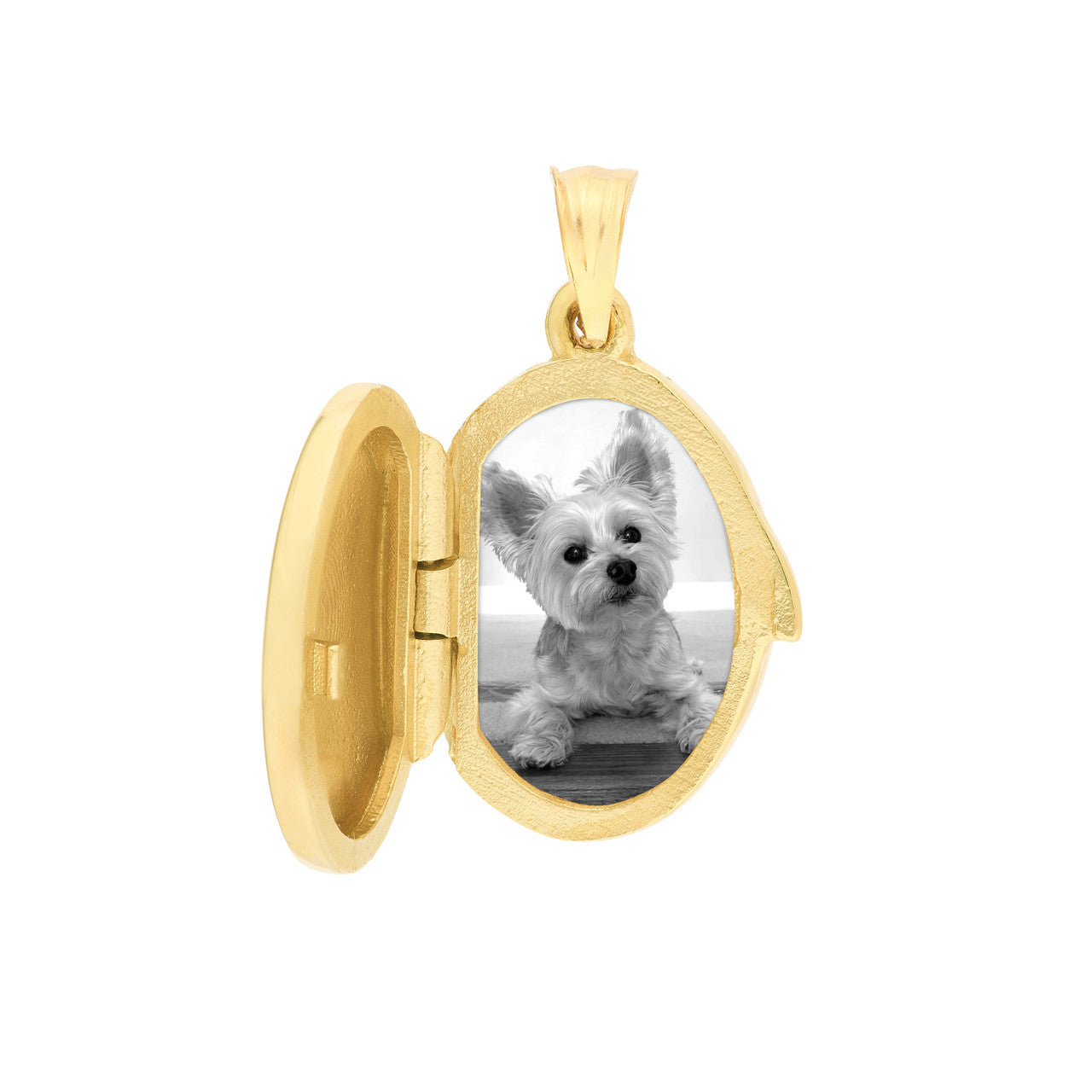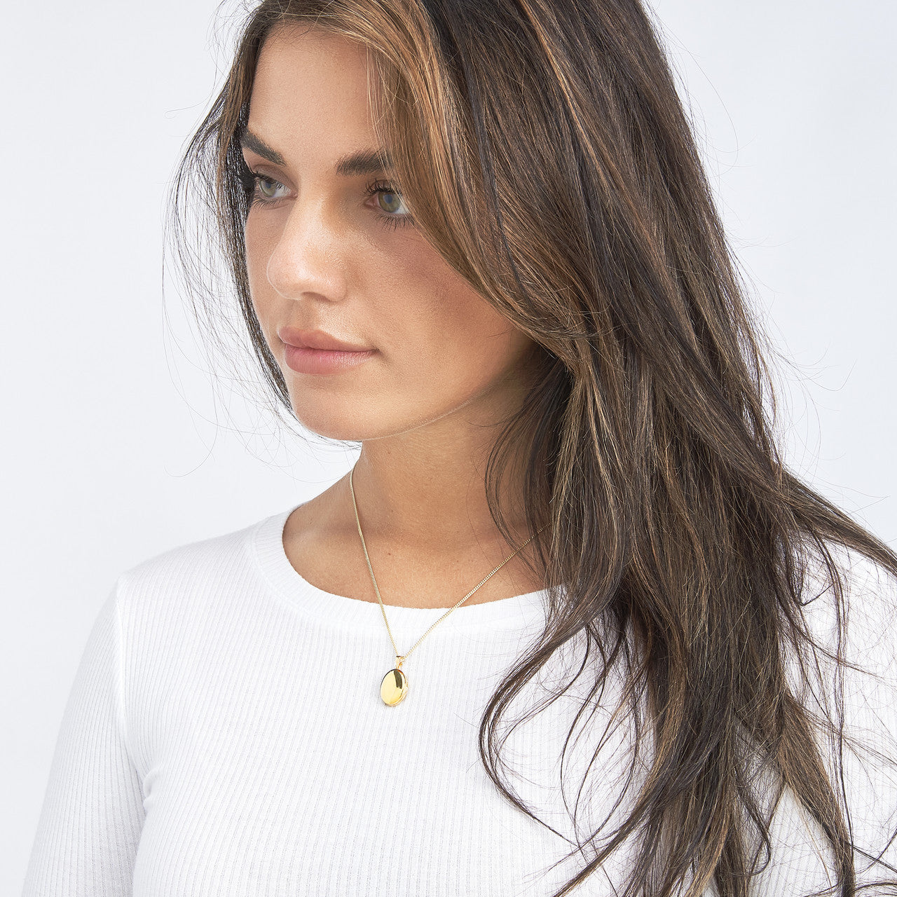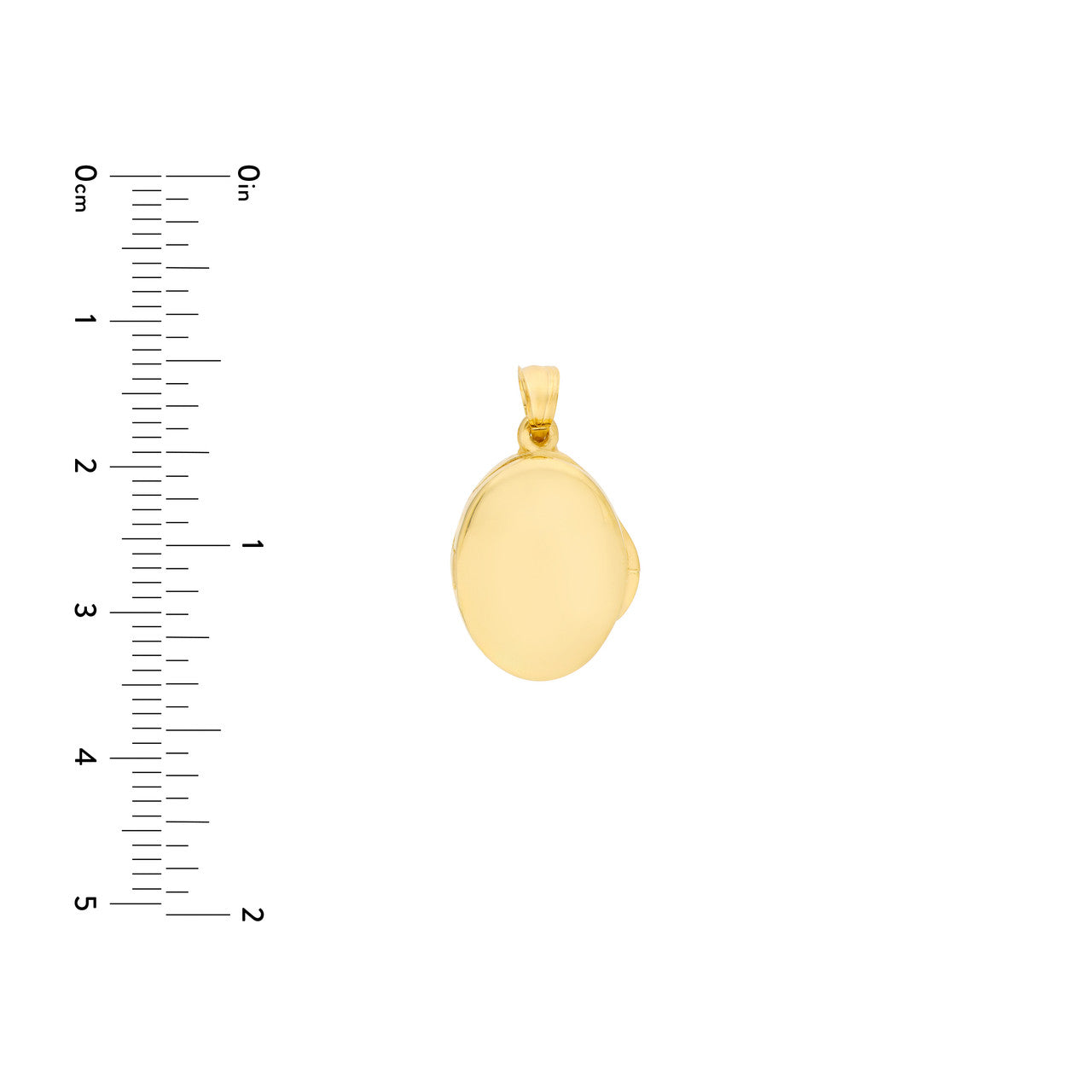 A small oval locket pendant in polished 14K yellow gold. Chains are sold separately.