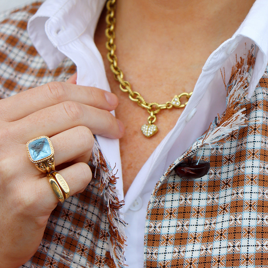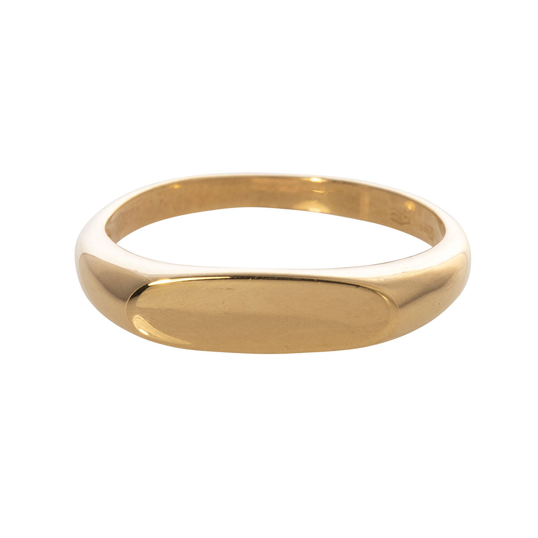 This signet ring features an oval-shaped bar signet in polished 18K yellow gold.