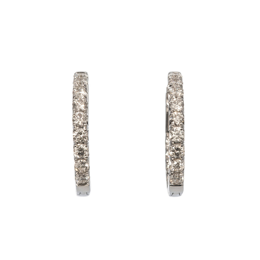 This pair of inside-out hoop earrings features pavé round brilliant diamonds on the outside and inside of the hoop in 14K white gold.