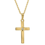 14K Yellow Gold Diamond 12x23mm Cross Pendant Necklace