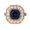 Art Deco Style 3.69ct Sapphire & Diamond 18K Gold Two-Tone Ring