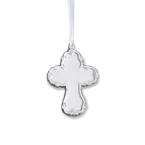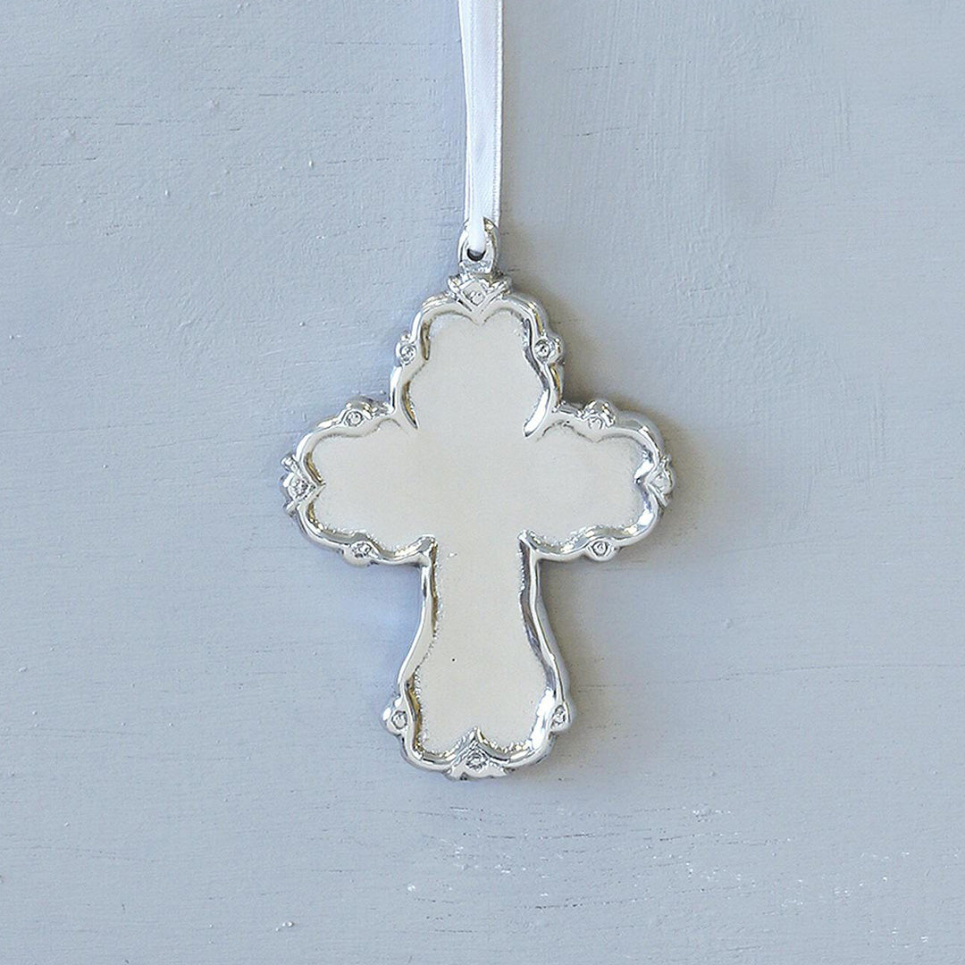 Beatriz Ball BABY Princess Cross Ornament features a pearl-dotted surface, and a rounded form characterized by delicacy and refinement. This lovely cross ornament may be hung from the branches of a Christmas tree, suspended from a length of satin ribbon (included), or placed flat on a table as a decorative accent.