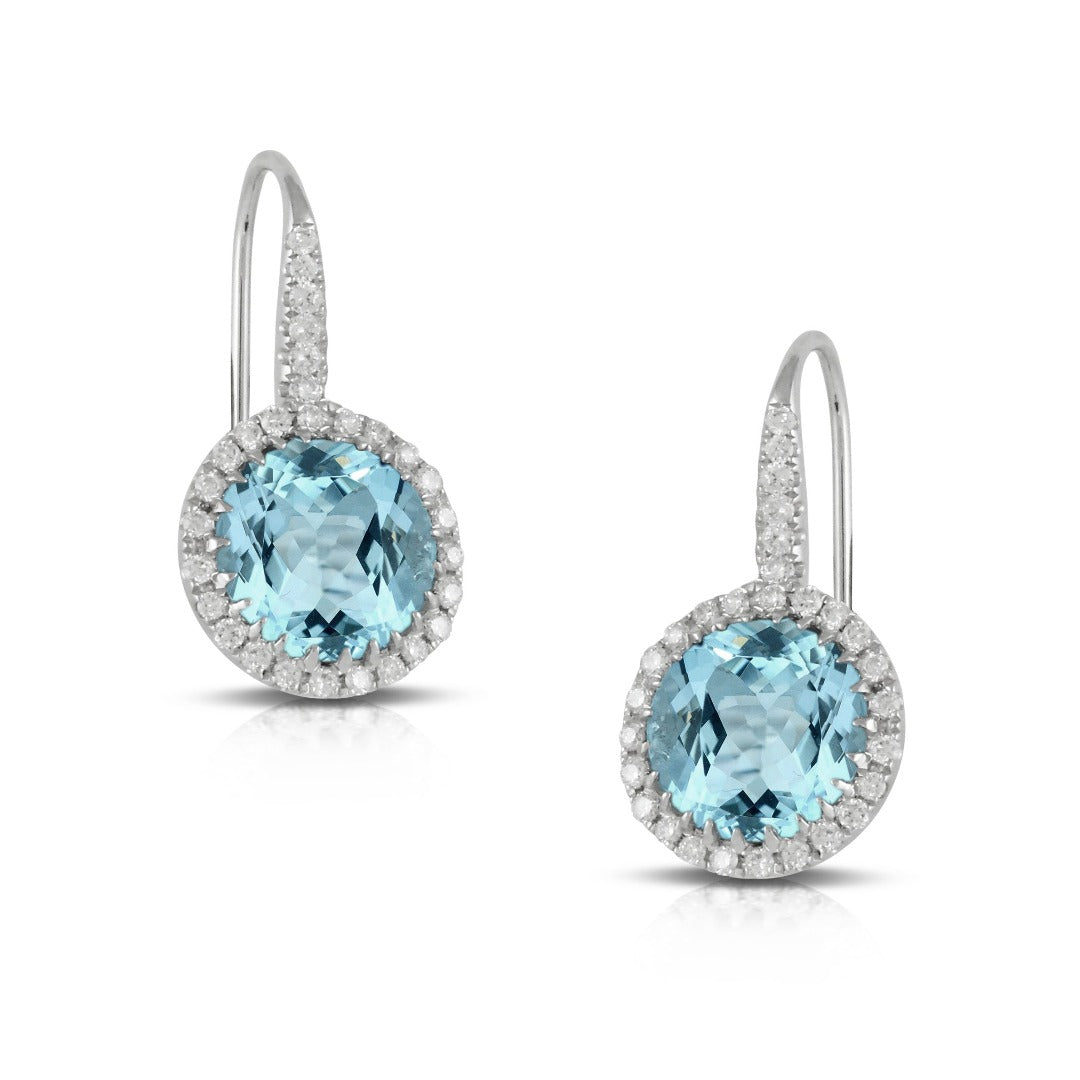Blue Topaz & Diamond Halo 18K White Gold Leverback Earrings