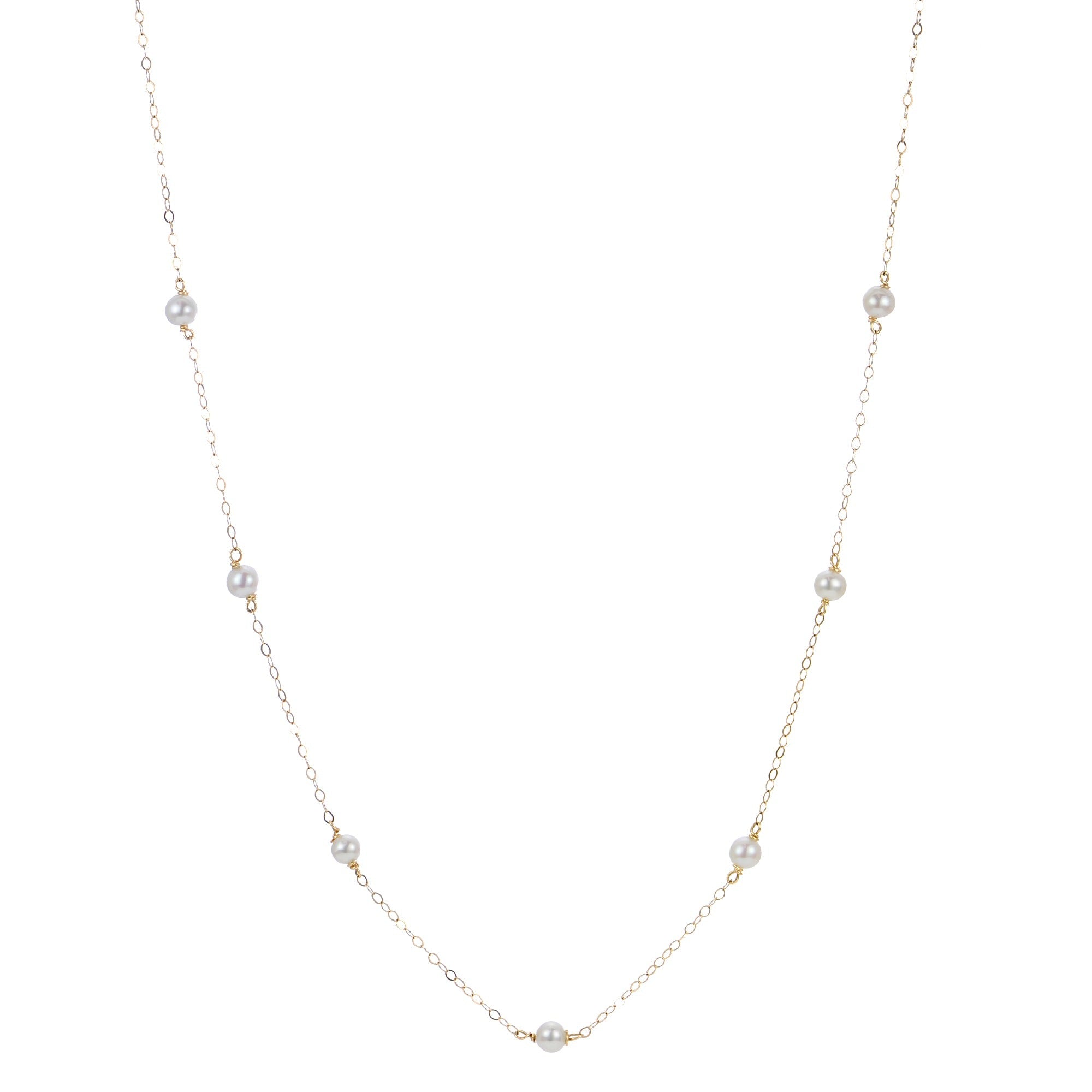 Child 4mm Freshwater Pearl Station 14K Yellow Gold Necklace