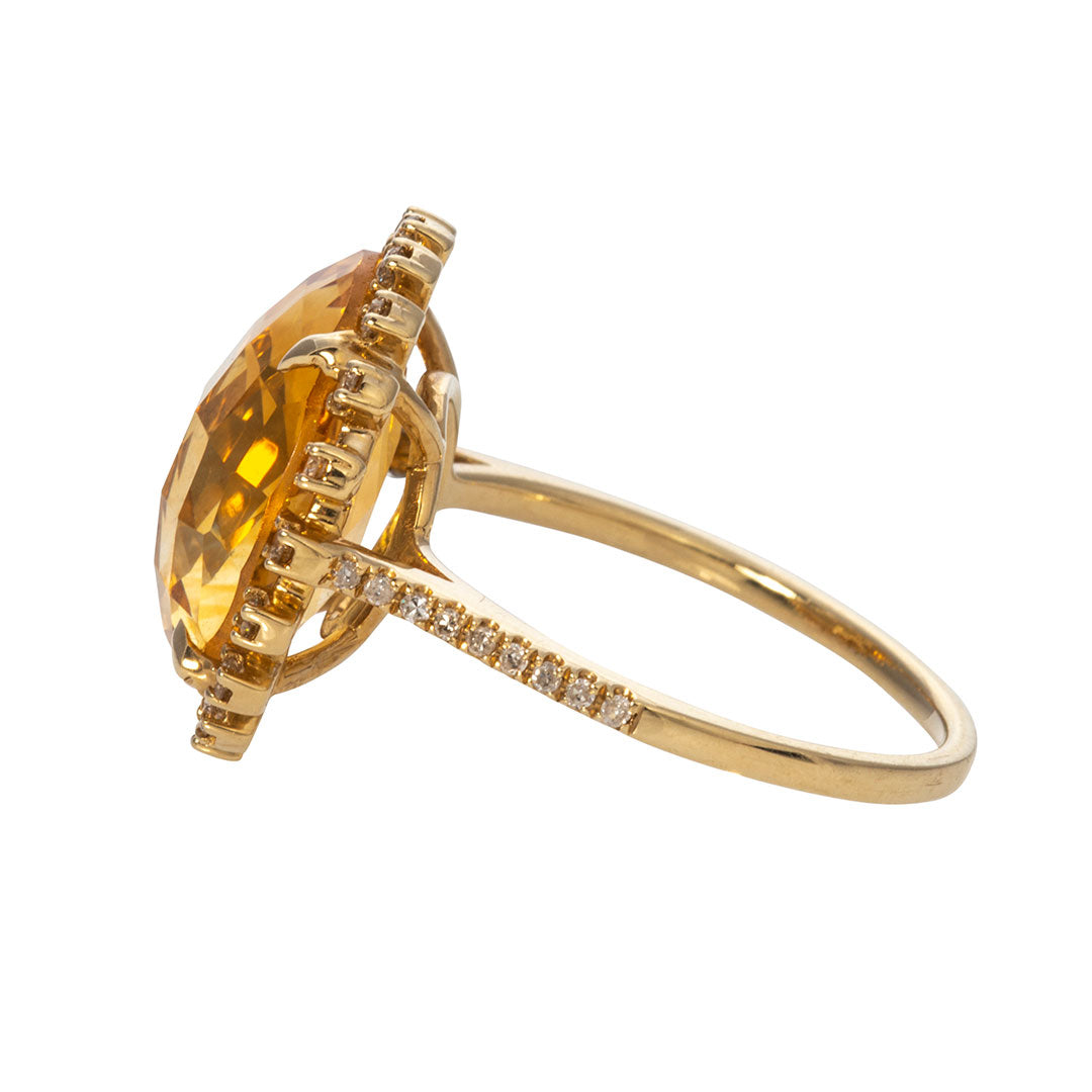 Citrine & Diamond Halo 18K Yellow Gold Ring