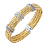 CZ Gold-Plated Silver 12mm Mesh Cuff Bangle