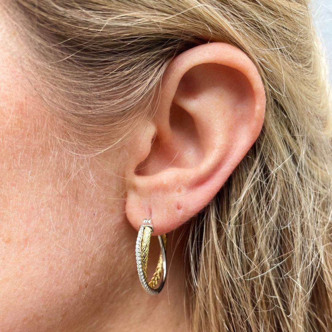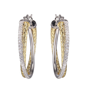 CZ Gold-Plated Silver Crossed Mesh 35mm Hoop Earrings