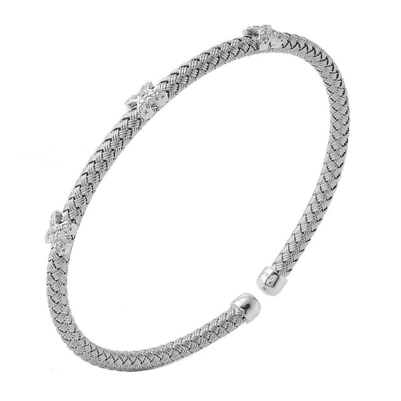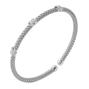 CZ Rhodium Plated Silver 4mm Mesh Cuff Bangle