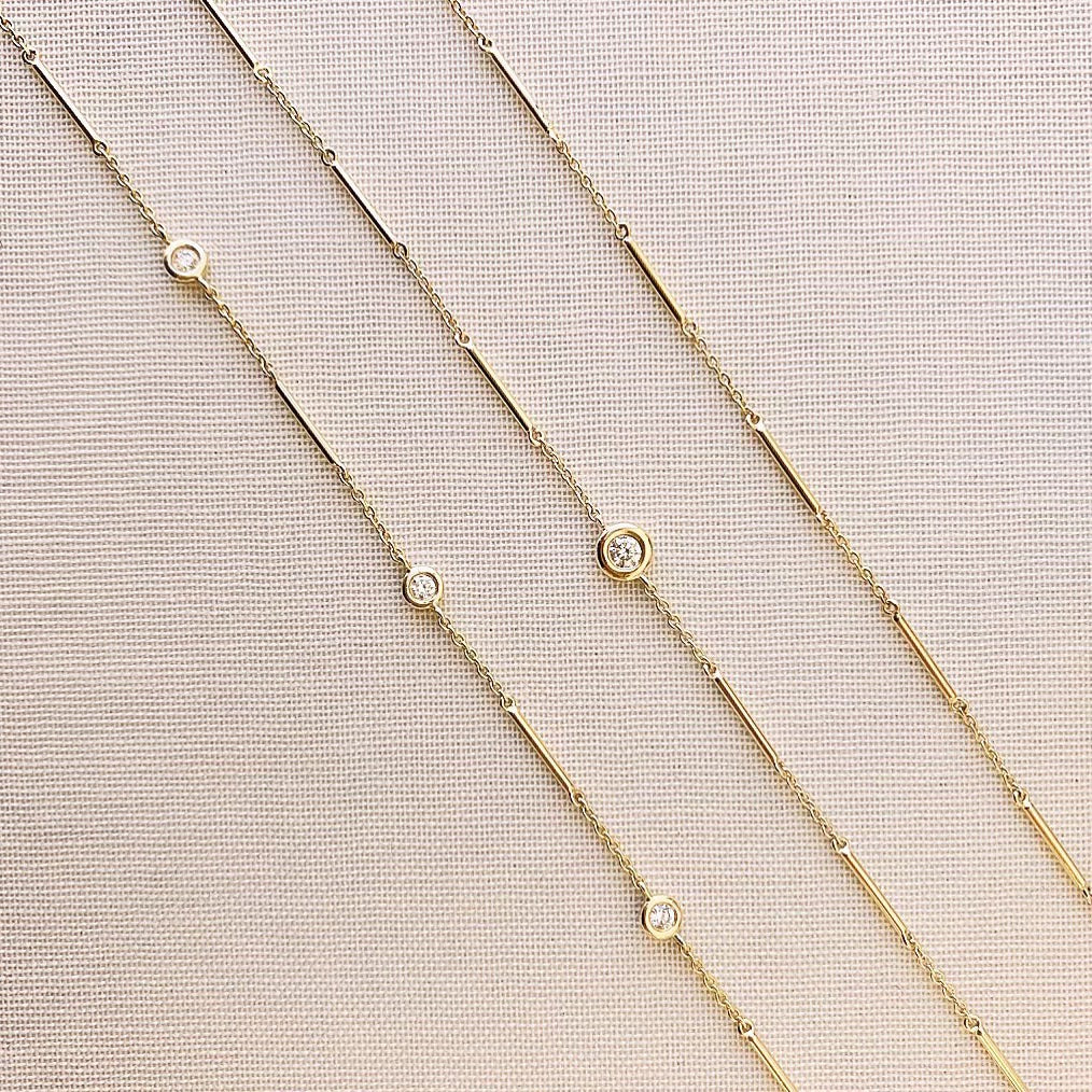 Diamond Bezel Station 14K Yellow Gold Bar Chain Bracelet