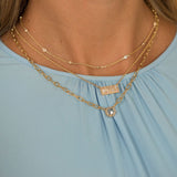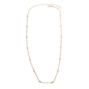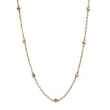 This diamonds-by-the-yard necklace features 14 bezel-set round brilliant diamond stations along a 14K yellow gold cable chain.