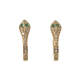 Diamond & Emerald 14K Gold Snake Huggie Earrings