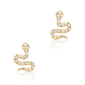 Diamond Pavé Petite Snake 14K Gold Stud Earrings
