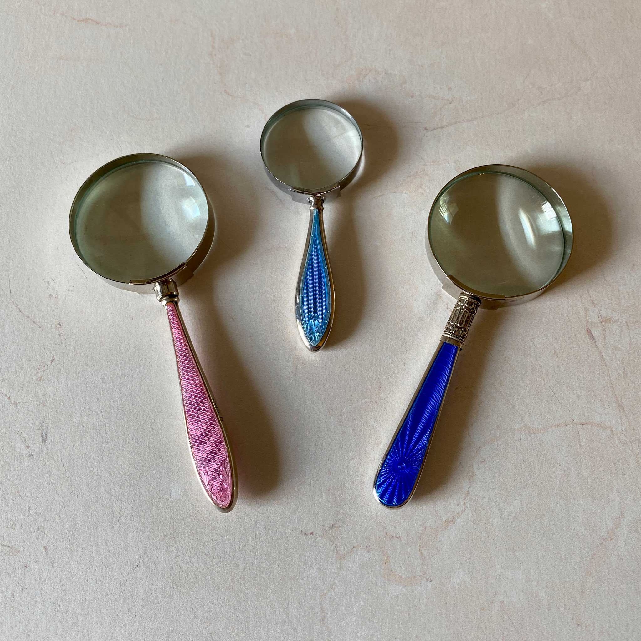 Edwardian Cobalt Blue Guilloché Enamel Sterling Silver Magnifying Glass