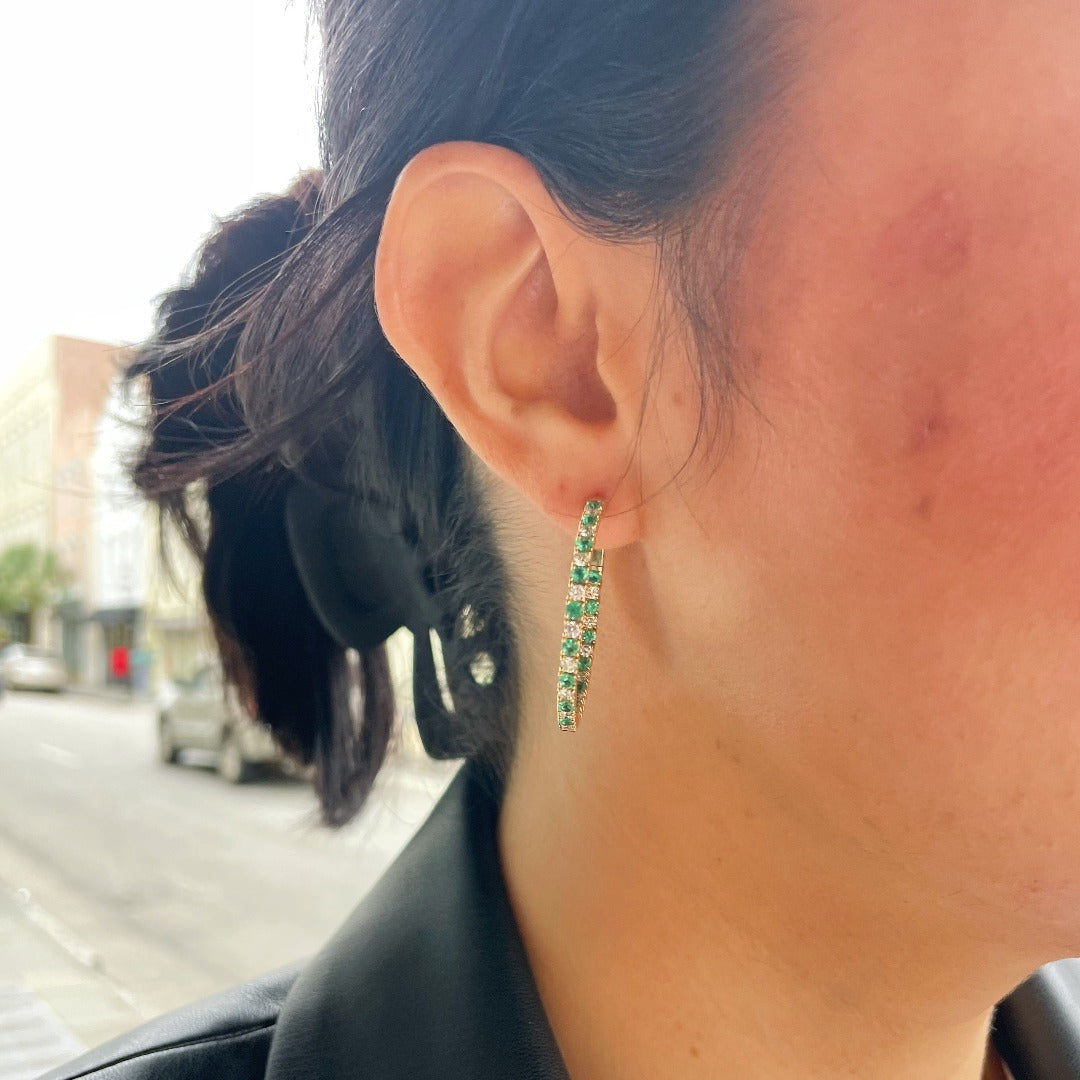 Emerald & Diamond Inside Out 14K Yellow Gold Flexible Hoops