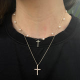 Freshwater Seed Pearl Cross 14K Yellow Gold Pendant Necklace