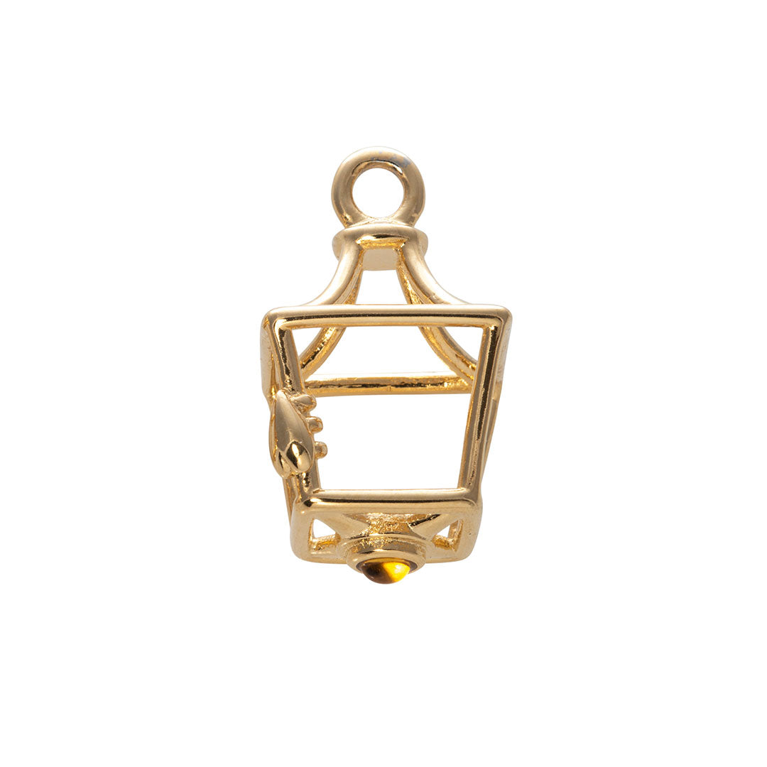 Goldbug Collection’s “There's No Place Like Home” Lantern Charm Pendant features a little bug crawling up the lantern and a little amber stone at the bottom, like a flame.