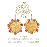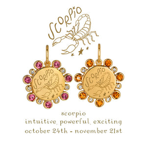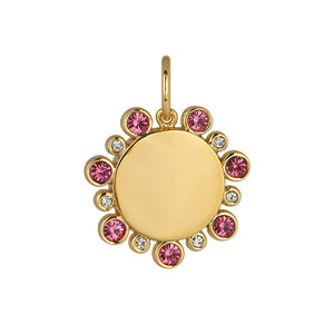 Goldbug Collection’s October Birthstone Pendant features an engravable center surrounded by bezel-set rose-pink and white crystals.