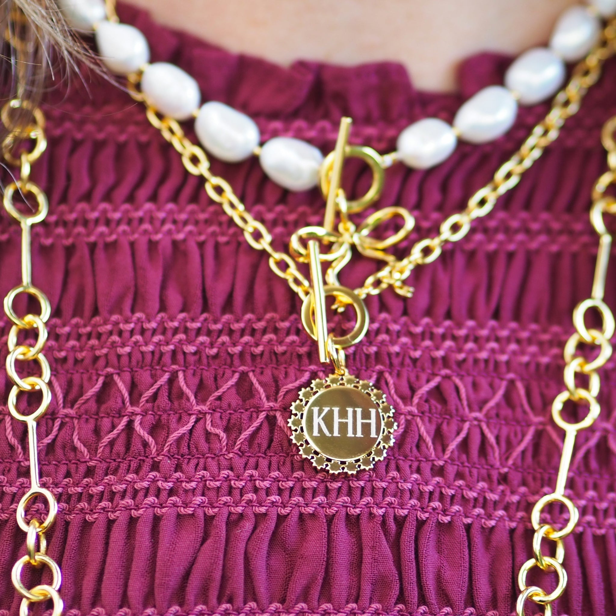 Goldbug Collection’s Small Star Edge Pendant features a star-shaped edge around a plain, personalizable 0.55-inch center.
