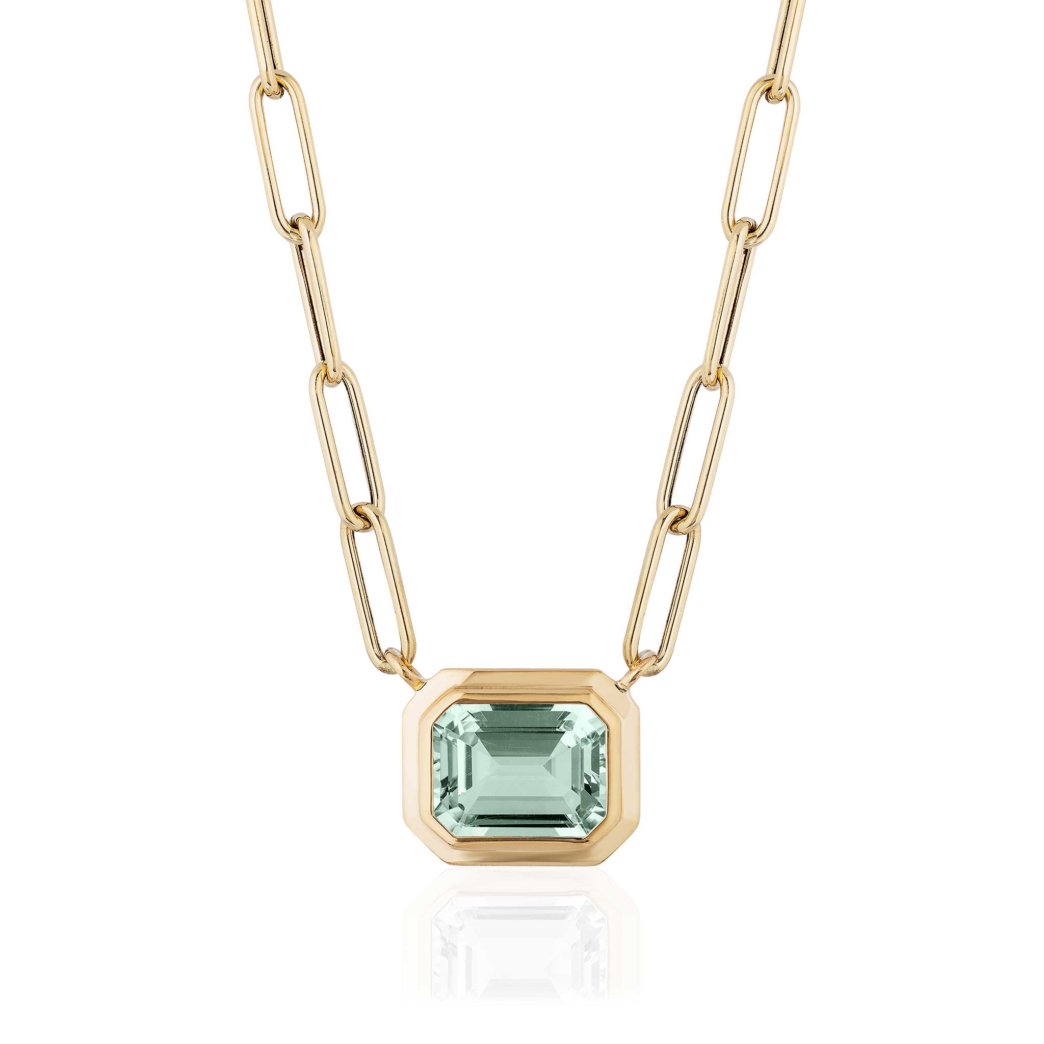 Goshwara 'Manhattan' Emerald-Cut Prasiolite East-West Bezel Set Pendant Paperclip Chain Necklace in 18K Yellow Gold