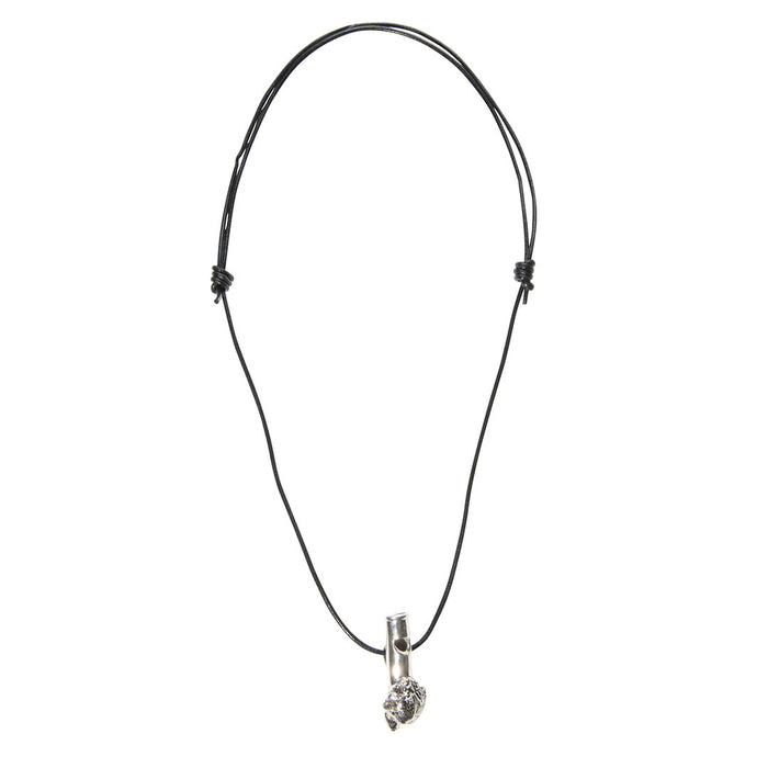 Grainger McKoy Lab Whistle Pendant is handcrafted in sterling silver and strung on an adjustable black cord.