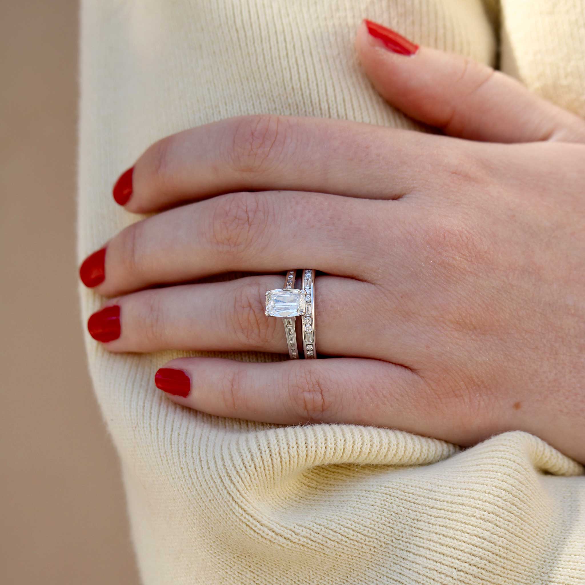 1.5ct Cushion Center & .22ct Baguette Side Diamond 18K Gold Ring