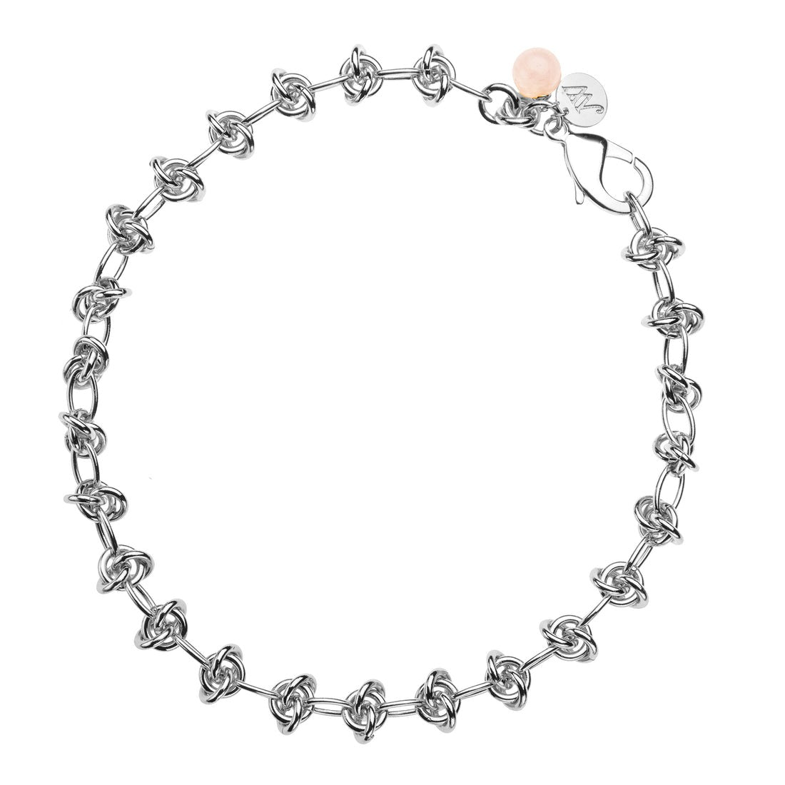 Jane Win In a Knot Chain with Rose Quartz Bead 16"