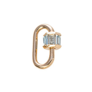 Marla Aaron Total Baguette Baby Lock is handcrafted in 14K yellow gold with baguette-cut aquamarine stones surrounding the closure.