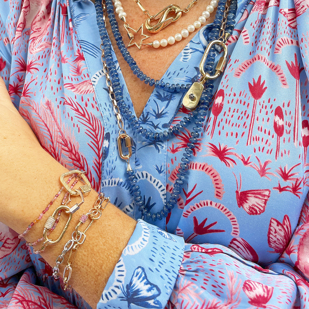 This lock connects to all Marla Aaron chains or strands and can be worn in infinite ways.