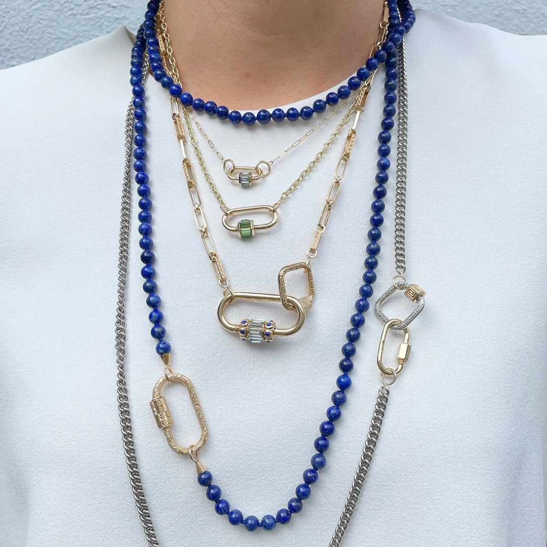 Fits best on all Marla Aaron stone or pearl necklaces, and a variety of thicker chains and bracelets.