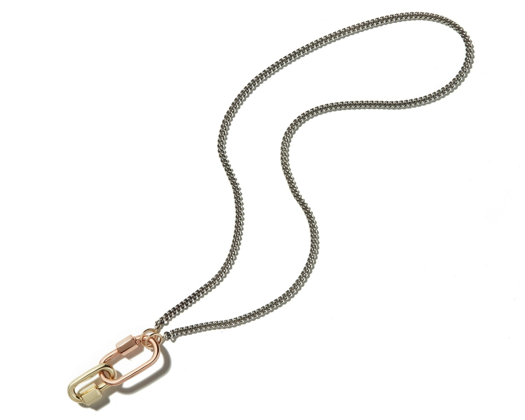 Marla Aaron Not So Heavy Curb Chain Necklace is handcrafted in oxidized sterling silver with 14K yellow gold loops. This chain is a true “medium” curb chain.