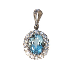Oval Aquamarine & Diamond Cluster 14K White Gold Pendant