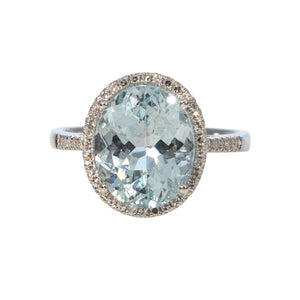 4.26ct Oval Aquamarine & Diamond Halo 14K White Gold Ring