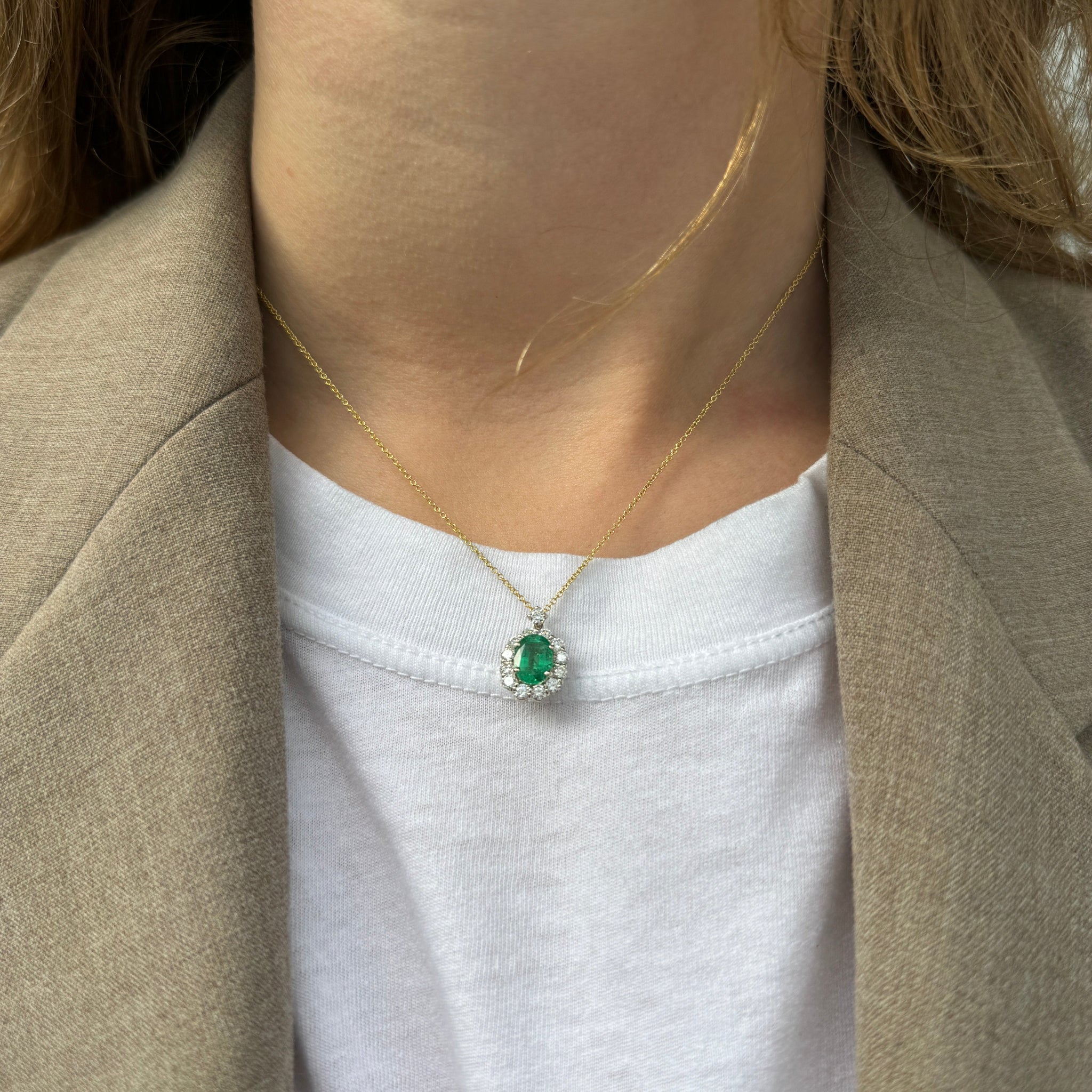 Oval Emerald & Diamond 18K Gold Pendant Necklace