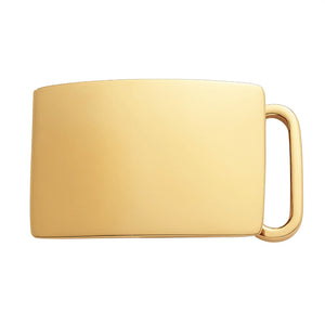 This gold-plated sterling silver slide-style belt buckle features a plain polished finish. This buckle accommodates belt straps that measure 1″ (25 mm) in width.
